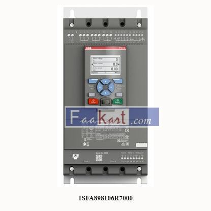 The softstarter PSTX60-600-70 has a rated maximum operational current of 60 A with an operating voltage span from 208...600 V AC. The rated control voltage is between 100...250 V AC at 50/60 Hz. PSTX features a three-phase control soft start and stop through a voltage or a torque ramp. It has built-
